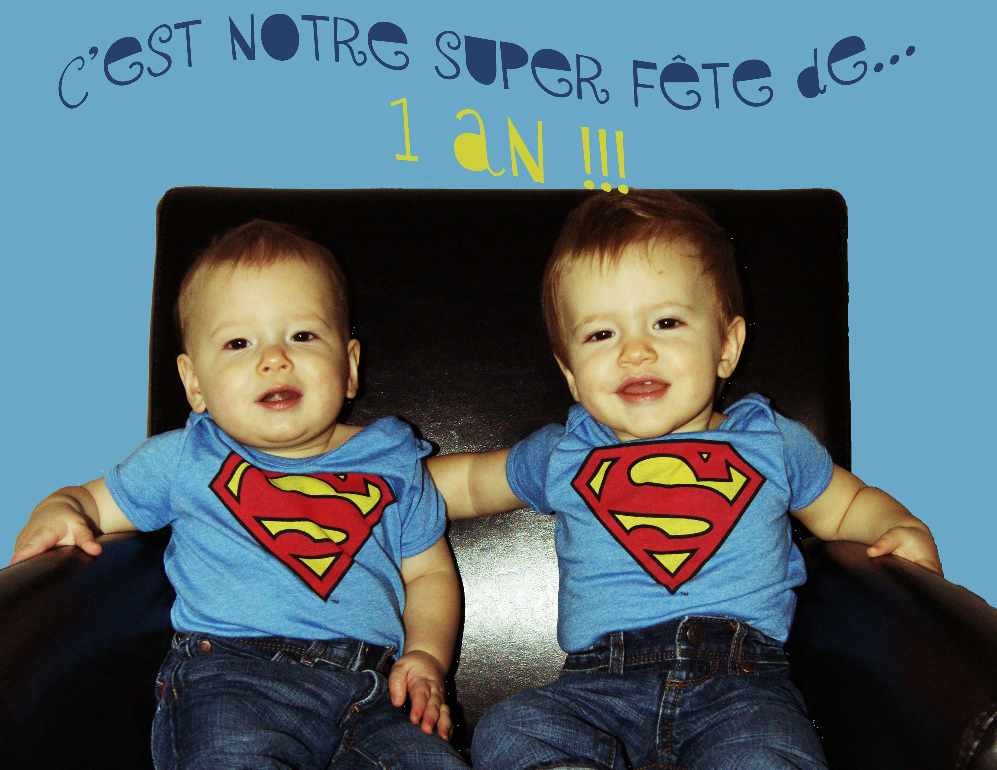 Pour les cadeaux d’anniversaire.. Ah bien je ne crois pas avoir besoin de vous dire que les bébés de un an, ils ne développent pas de cadeaux. Ils déchirent 2-3 coins de papier et retournent à la découverte du monde qui les entourent. Il va sans dire qu’avec des jumeaux, on a besoin de beaucoup de vêtements et c’est toujours agréable de recevoir de beaux morceaux qu’on n’aurait pas achetés nous-même. Je vous suggère de demander des cadeaux qui vous simplifierons la vie : Petit-pot en vue de l’entraînement à la propreté, des vêtements, fonds d’investissement pour les études (les grands-parents peuvent vouloir y contribuer), premier tricycle, premiers livres, etc. Il est correct de demander de ne pas acheter de peluches ou de jouets. La maison devient vite un terrain de jeu et les enfants finissent par jouer qu’avec les 3 mêmes et alors vous êtes encombrée pour rien. De plus, les bébés de prennent pas “plaisir” à recevoir un cadeau donc ne vous sentez pas mal qu’ils ne reçoivent pas des montagnes de jouets ou autres. Pour ce qui est des cadeaux combinés (un gros cadeau pour les deux), je crois que c’est correct de le faire jusqu’à l’âge de 3-4 ans, après ça peut devenir problématique et créer des chicanes ou de la jalousie. Je me suis souvent fait dire par des jumeaux, aujourd’hui adultes, qu’ils détestaient partager le même cadeau avec leur jumeau.