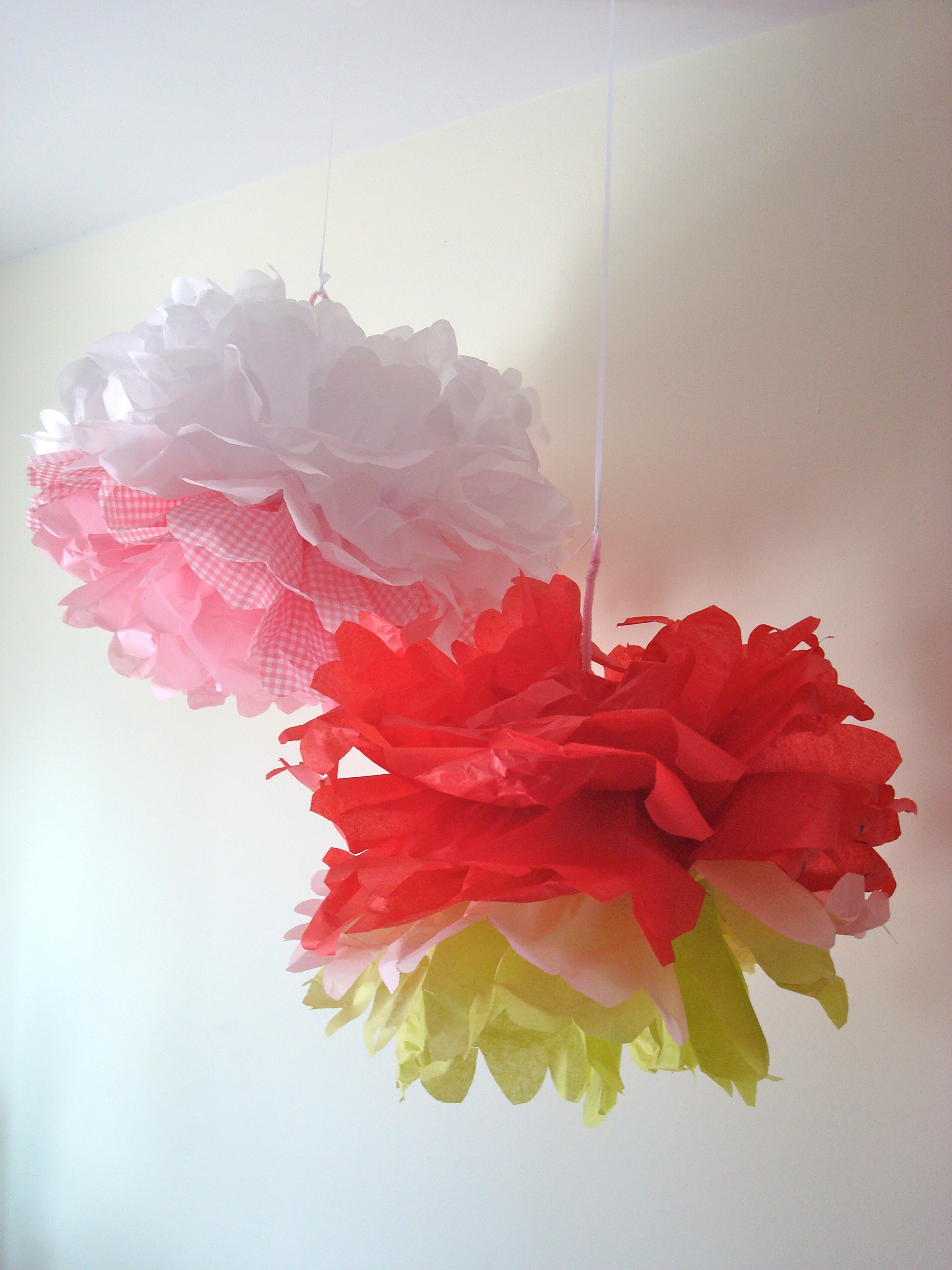 En faisant quelques recherches sur Pinterest, j’ai découvert qu’il était très facile de confectionner des ponpons de papier de soie qui ajoutent vraiment un côté “girlie” à n’importe qu’elle fête. J’ai fait ma première expérience et je dois dire que j’étais pas mal fière du résultat! Je vous invite à cliquez ici pour apprendre comment faire des ponpons comme les miens!