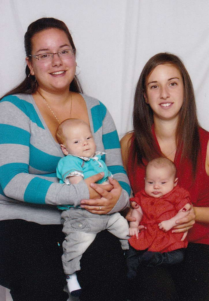 Oui, j’ai assistée à tous les rendez-vous avec Claudine, à chaque soir nous lisions notre page dans un livre de grossesse au quotidien. Je touchais son ventre, je parlais aux bébés, la seule chose c’était que je n’avais pas le bedon. Claudine a eu une grossesse facile, fatigue certe, mais peu de maux de coeur. Nous avons vécu toute la grossesse à part égale, je ne peux pas dire que je l’ai enviée car j’ai l’impression d’avoir vécu toute la grossesse avec elle, des premiers mouvements des bébés aux soins que nous leur portons.