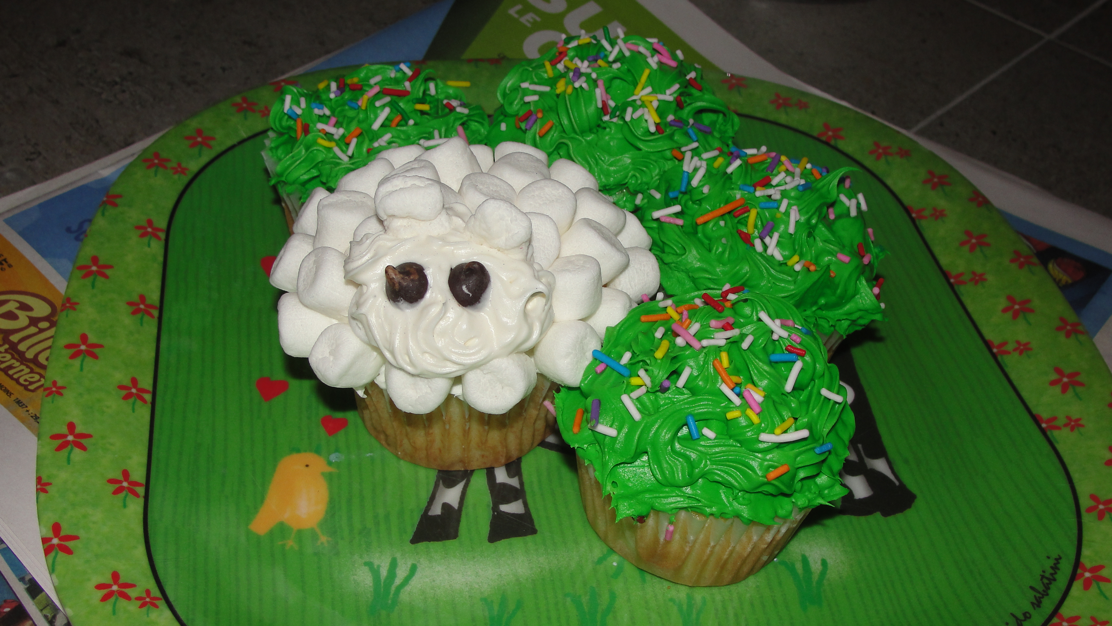 À 3 ans, j’étais dans le jus total et comme ils ne semblaient pas avoir de passion pour rien en particulier, j’ai fait des cupcakes en moutons. Ce fut un succès! Simple, rapide et facile et WOW ! Tout le monde a trippé.